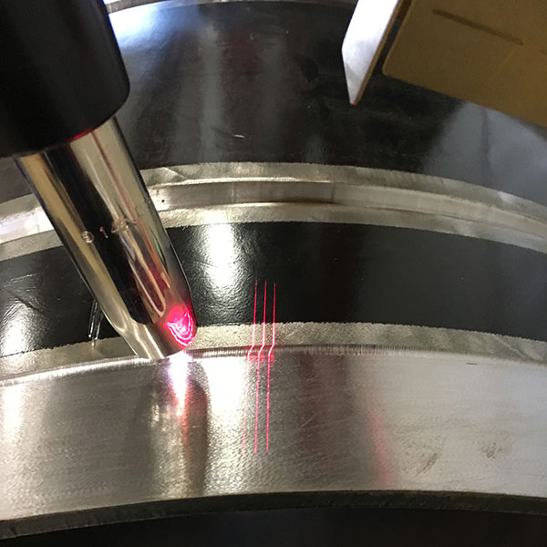 A light pattern comprising three parallel laser lines is projected onto the component surface according to the principle of laser triangulation. At the same time, the seam shape at the joint is scanned by a digital camera. The laser lines are interrupted at the joint due to the inclined projection of approximately 20° and thus mark the seam point on the joint line.